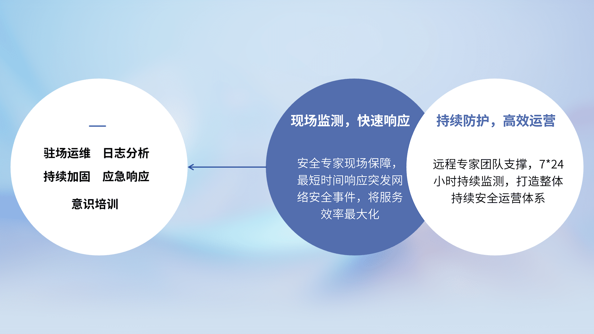 针对客户行业特性,,,,提供专属的一站式安全管理服务,,帮助客户全面感知网络空间威胁,,通过安全专家的线上、、线下防护支持,,实现风险闭环,,,将安全保障常态化,,,,为客户打造常态化安全运维运营服务。。。